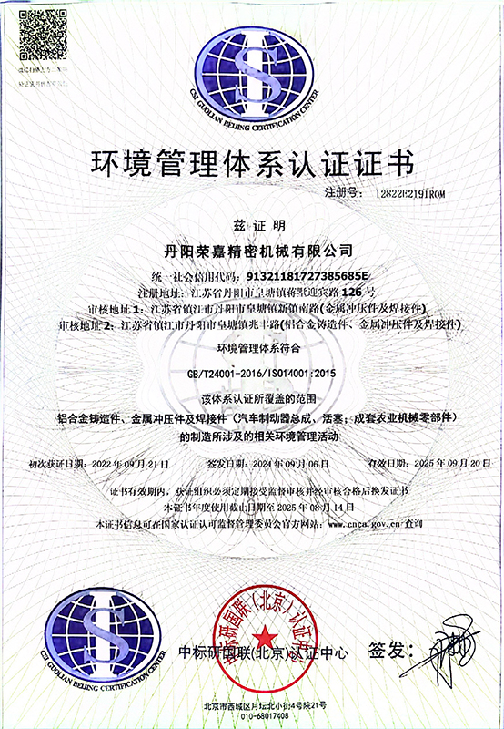 2024年環境管理體系認證證書-英文